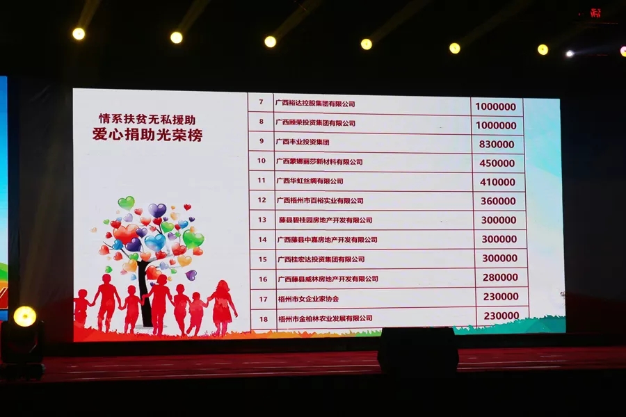 為進(jìn)一步動(dòng)員各民營(yíng)企業(yè)、社會(huì)組織、社會(huì)各界愛心人士積極參與到扶貧攻堅(jiān)的壯麗事業(yè)中來(lái),形成“人人皆愿為、人人皆可為、人人皆能為”的社會(huì)扶貧參與機(jī)制,集中社會(huì)各方力量高質(zhì)量打贏打好脫貧攻堅(jiān)戰(zhàn),在10月17日我國(guó)第6個(gè)“扶貧日”來(lái)臨之際,10月16日晚梧州市2019年國(guó)家扶貧日“提高脫貧質(zhì)量 鞏固脫貧成果”主題公益晚會(huì)上,百裕集團(tuán)多年來(lái)積極助力脫貧攻堅(jiān)戰(zhàn)役和社會(huì)公益活動(dòng)工作成績(jī)顯著得到表彰。