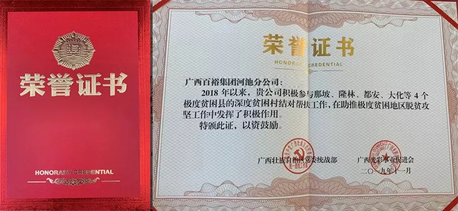 百裕集團(tuán)河池分公司作為環(huán)江馴樂(lè)鄉(xiāng)鎮(zhèn)北村結(jié)對(duì)幫扶企業(yè),在扶貧攻堅(jiān)工作中突出貢獻(xiàn)受到表?yè)P(yáng)。