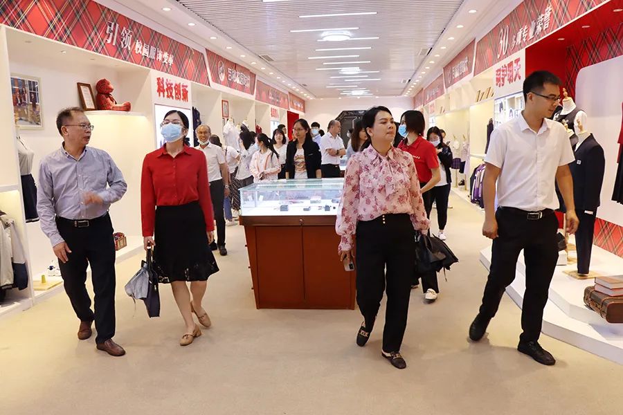 在服飾品牌展示館內(nèi),各系列個(gè)性化的服飾引來學(xué)員們的驚嘆與贊許,同時(shí)對公司生產(chǎn)的服裝融入民族傳統(tǒng)元素的理念及生產(chǎn)工藝技術(shù)表示贊賞與肯定。