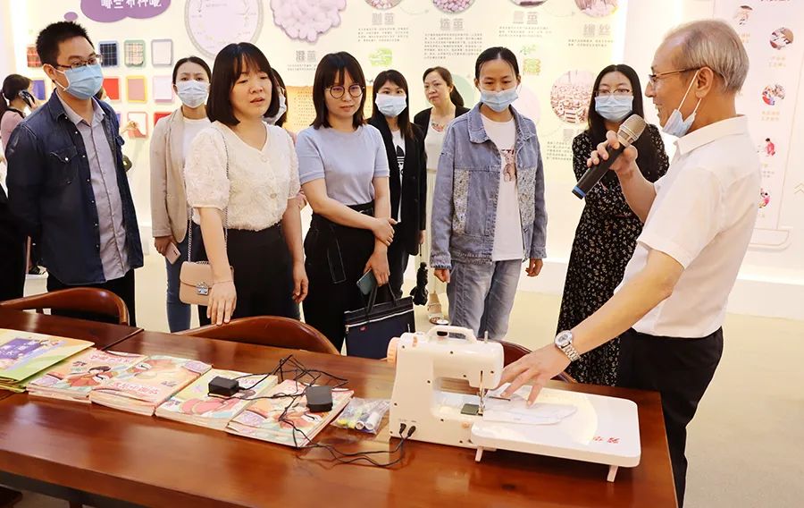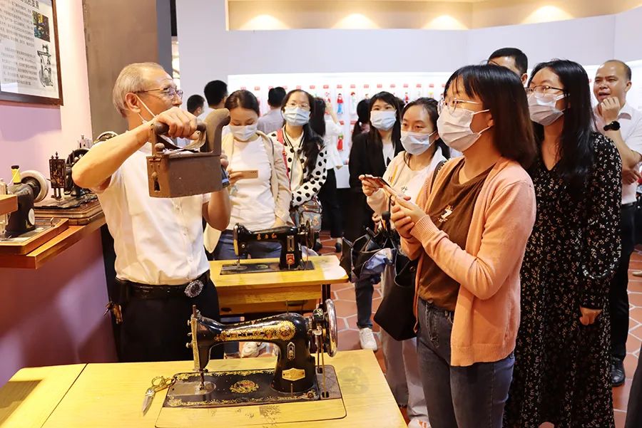 在文化館內(nèi),學(xué)員們學(xué)習(xí)學(xué)生服飾歷史文化,近距離了解不同時(shí)代的服飾生產(chǎn)機(jī)器,感受服飾的魅力及人類智慧的文明發(fā)展。