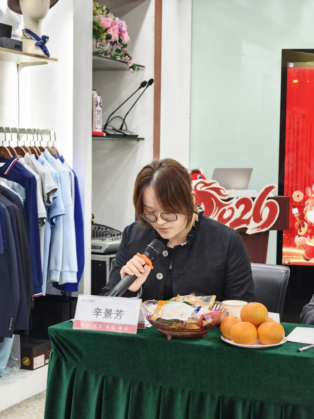 大會(huì)伊始,全體參會(huì)人員在國(guó)歌中起立,拉開(kāi)序幕。主持人介紹領(lǐng)導(dǎo),感謝員工一年付出,問(wèn)候領(lǐng)導(dǎo),現(xiàn)場(chǎng)氣氛熱烈。會(huì)上,董事長(zhǎng)許曲煌致辭指出,2025年是“十四五”收官、集團(tuán)守正創(chuàng)新關(guān)鍵年,各環(huán)節(jié)凝聚員工智慧汗水。以精益管理和多元業(yè)態(tài)發(fā)展,在服裝主業(yè)實(shí)現(xiàn)從傳統(tǒng)制造到高端“智造”跨越,團(tuán)隊(duì)建設(shè)提升了協(xié)作效率和員工能力。展望2026年,是“十五五”開(kāi)局、智能與實(shí)體融合攻堅(jiān)年,集團(tuán)將搶抓機(jī)遇,推動(dòng)AI賦能全鏈條,深耕創(chuàng)新,提升主業(yè)。