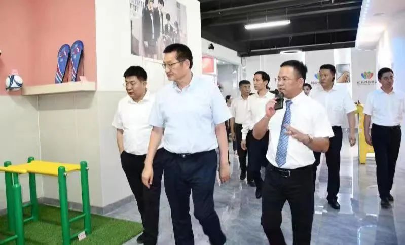 觀摩過程中,到訪領導認真聽取負責人關于企業(yè)建設規(guī)劃和推動菏澤教育裝備產業(yè)發(fā)展的構思,觀看企業(yè)介紹短片,并到園區(qū)展示廳現(xiàn)場指導。園區(qū)展示主要由三部分組成,第一部分是服裝展廳,第二部分是教育裝備展廳,第三部分是已經入駐企業(yè)的展廳。服裝展示廳由優(yōu)諾學生服飾展廳和“喬派恩”單位團體制服訂購展廳構成,全部是自主研發(fā)的產品;在服裝展廳里,現(xiàn)場擺放的服裝生產機械設備,是目前國內最先進的全自動高速電腦縫紉機,入駐的服裝企業(yè)已經同步進行招工,計劃8月底投產。通過介紹,各位領導了解到我國現(xiàn)有在校學生2.1億人,每年全國校服采購量約1000億,菏澤市130萬學生,每年也有3個億以上的采購量,蔡文河表示:“在政府的進一步支持下,我們將引進上下游企業(yè),把服裝板塊做到10億產值規(guī)?!?。在教育裝備展示廳中,現(xiàn)場展示的教育教學設備引起領導們的強烈興趣,張書記、張市長都分別在實驗儀器和科普儀器親自體驗,蔡文河總經理介紹到:教育裝備種類比較多,約有8000多種產品,現(xiàn)在展廳展出的是與日常教學相關的具有代表性的產品,將持續(xù)引進20家行業(yè)龍頭企業(yè),表示在菏澤市委市政府和鄄城縣委縣政府的大力支持下,有信心幾年內把菏澤科教產業(yè)做成百億規(guī)模的產業(yè)集群,打響菏澤科教產業(yè)品牌,并計劃在政府指導下申報“全國教育裝備產業(yè)基地”稱號。領導們對產業(yè)園區(qū)的發(fā)展規(guī)劃表示贊賞,市委張書記表示政府一定大力支持產業(yè)發(fā)展,教育裝備是很有前景的產業(yè),要堅定投資信心,要按照規(guī)劃發(fā)展好。張倫市長對園區(qū)的建設速度和建設成果表示滿意,指示要進一步加快園區(qū)建設力度,要盡快形成產業(yè)集群化、規(guī)?;?。
