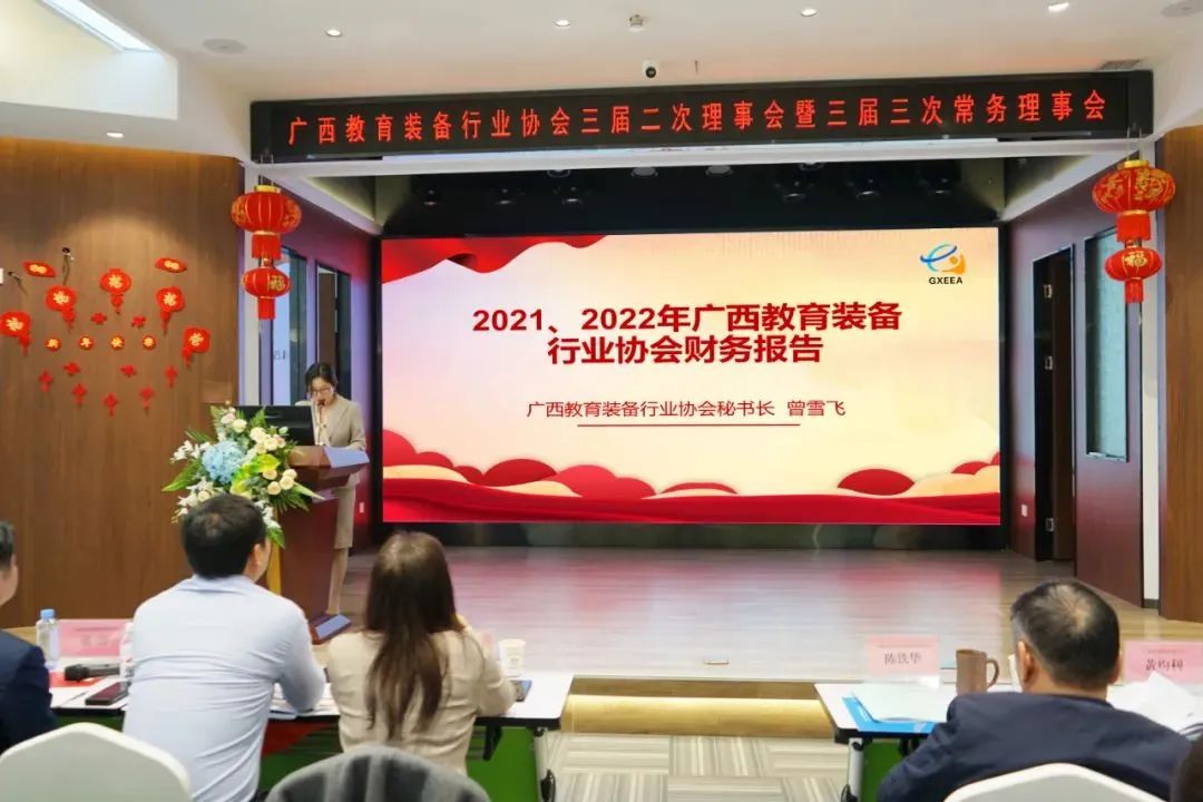 秘書長曾雪飛對2021、2022年廣西教育裝備行業(yè)協(xié)會財(cái)務(wù)報(bào)告進(jìn)行匯報(bào)。