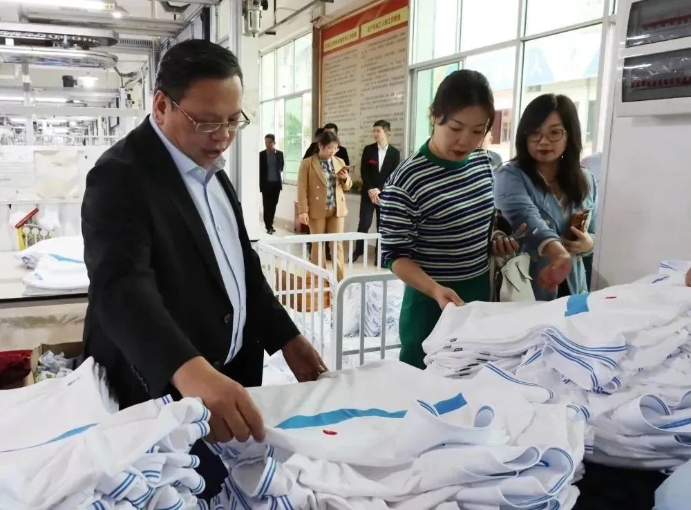 4月1日,百裕集團許曲煌董事長帶領廈門大學 EMBA 東盟班的同窗們來到集團參觀交流。先后參觀了黨建中心、民族團結同心文化廣場、廣西中小學勞動實踐基地、服裝生產(chǎn)車間、校服文化館、服裝展示中心 ,了解百裕集團的發(fā)展歷史、科研創(chuàng)新和未來規(guī)劃建設等情況。隨后,許董事長與同窗們進行了深切的交流會談,貫徹學習黨的二十大精神,并進行經(jīng)驗交流、共敘昔日的同窗情。
