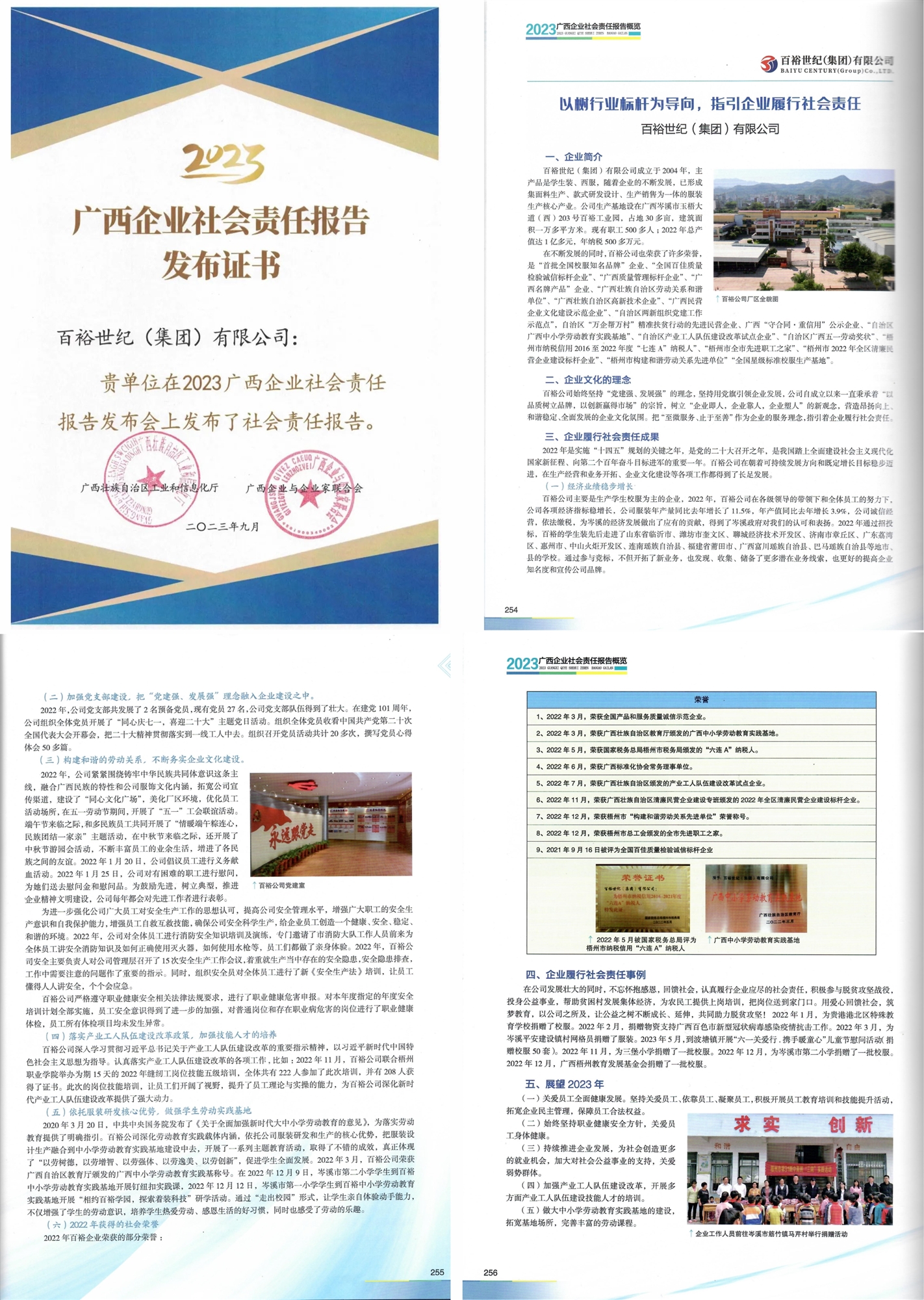 為深入學(xué)習(xí)貫徹黨的二十大精神及習(xí)近平總書記關(guān)于企業(yè)社會(huì)責(zé)任建設(shè)的重要指示精神。2023年9月26日下午,由廣西壯族自治區(qū)工業(yè)和信息化廳、廣西企業(yè)與企業(yè)家聯(lián)合會(huì)共同主辦的“2023廣西企業(yè)社會(huì)責(zé)任報(bào)告發(fā)布會(huì)暨十年回顧與展望”活動(dòng)在南寧隆重舉行。廣西區(qū)各大國企央企以及各行業(yè)代表企業(yè)包括百裕集團(tuán)在內(nèi)的近百家企業(yè)齊聚一堂,向社會(huì)展示了廣西企業(yè)2022年度履行企業(yè)社會(huì)責(zé)任實(shí)踐取得的主要成果。會(huì)上,百裕集團(tuán)獲頒廣西企業(yè)社會(huì)責(zé)任報(bào)告發(fā)布證書。