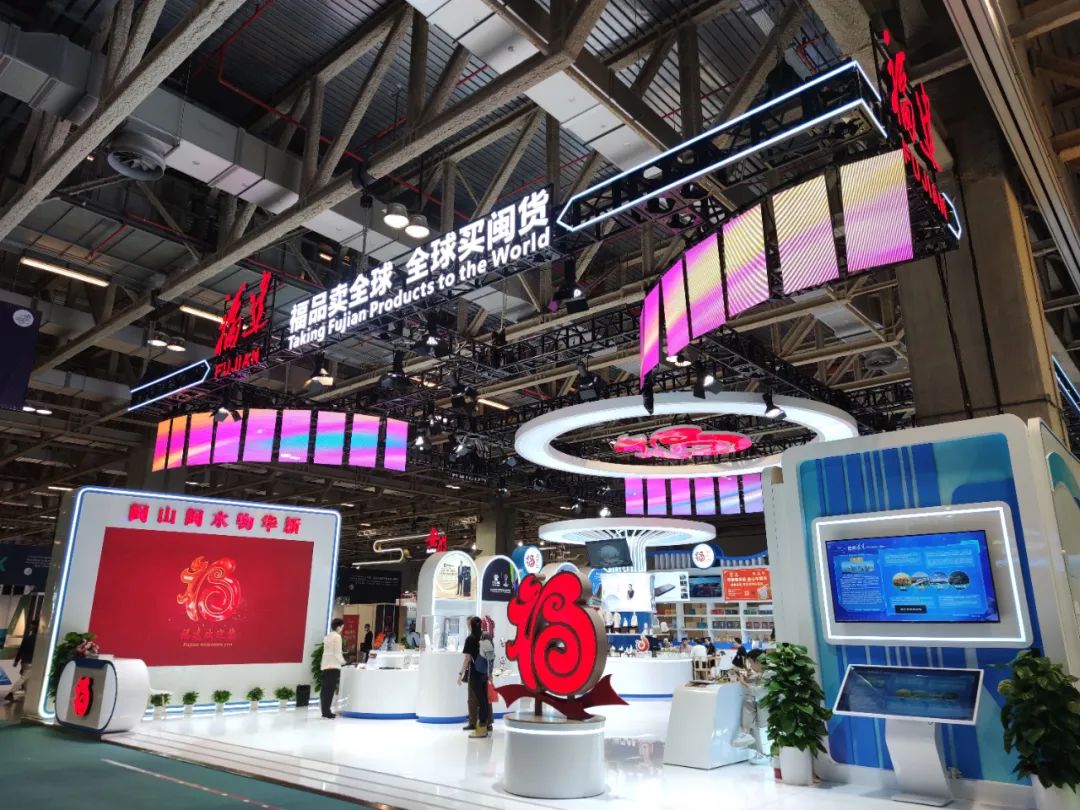 福建館以“福品賣全球、全球買閩貨”為主題,突出“福文化”,設(shè)置了“1+5”展區(qū),分別為福建形象展示區(qū)和福味飄香、福享食尚、福茶生活、福見商旅、福潮國風(fēng)等“五?!闭箙^(qū),福建福品類別中的消費品品牌企業(yè)帶來了福品知名品牌、地標性產(chǎn)品、老字號品牌和福品“新秀”等百余款福品好物。此外,福建館在展陳方式上進一步創(chuàng)新,通過智能算法、手勢感應(yīng)等前沿技術(shù)以及老字號美食現(xiàn)場制作、品鑒等,讓福建館更具科技性、互動性、參與性。