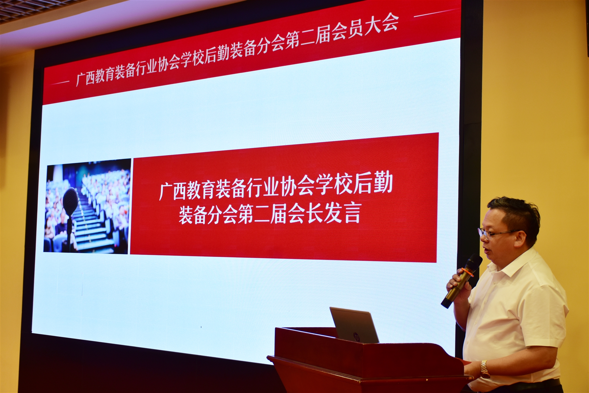 2024年5月14日,廣西教育裝備行業(yè)協(xié)會學校后勤裝備分會第二屆會員大會在南寧湘桂酒店順利召開。會議邀請了協(xié)會有關(guān)專家及分會會員單位等30余人參加。廣西教育裝備行業(yè)協(xié)會創(chuàng)會會長陳鐵華,廣西教育裝備行業(yè)協(xié)會駐會顧問、廣西教育技術(shù)和信息化中心原副主任陳軍到會指導,協(xié)會秘書長曾雪飛出席了會議。