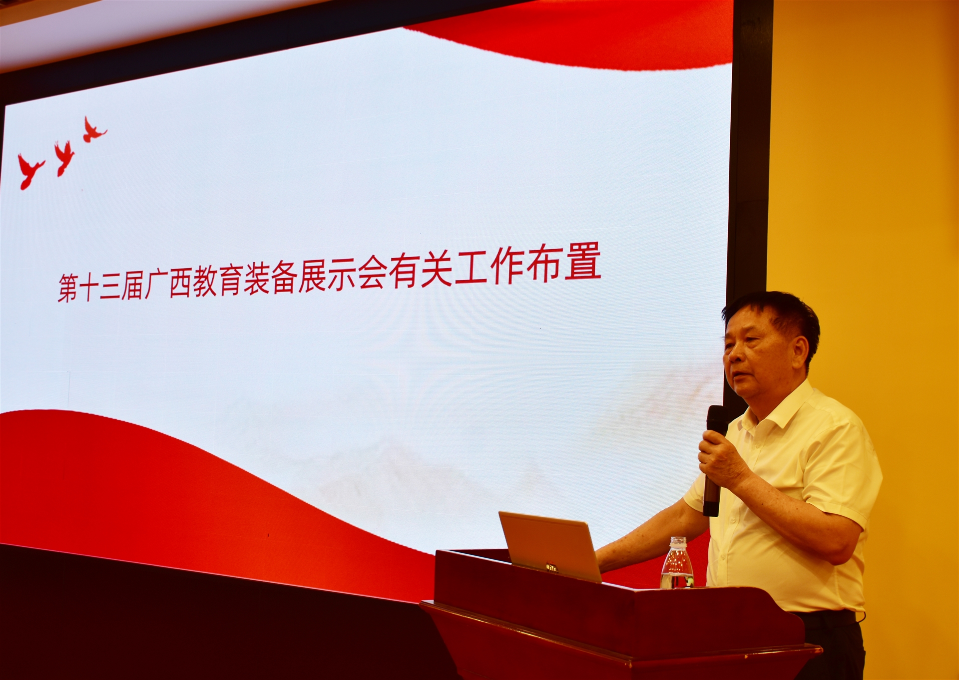 最后,廣西教育裝備行業(yè)協(xié)會創(chuàng)會會長陳鐵華做相關(guān)工作布置,他就今年教育裝備突出的亮點、協(xié)會如何發(fā)揮搭建與政府、學校聯(lián)系的橋梁作用、為政府為教育、為會員發(fā)展服務等方面進行了詳細分析,他表示,今年第十三屆廣西教育裝備展將更注重科技創(chuàng)新產(chǎn)品,鼓勵和提倡各企業(yè)組成聯(lián)盟展團,更全面地展示相關(guān)領域的優(yōu)秀產(chǎn)品,給觀眾更好的現(xiàn)場體驗。未來,協(xié)會將與會員企業(yè)攜手共進,為教育裝備行業(yè)的發(fā)展貢獻智慧,提供優(yōu)質(zhì)服務。