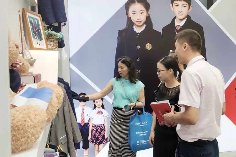 此次展會(huì),百裕校園時(shí)代帶來的幼兒園、中小學(xué)禮服、運(yùn)動(dòng)服等一系列校園服飾產(chǎn)品案例,可針對(duì)不同學(xué)校、地區(qū)需求給出最合理的方案?,F(xiàn)場大屏幕上滾動(dòng)播放集團(tuán)介紹、品牌建設(shè)等視頻,以及現(xiàn)場產(chǎn)品實(shí)物的展示,吸引了眾多觀眾的眼球,并與銷售人員面對(duì)面溝通,展會(huì)現(xiàn)場氣氛熱烈。