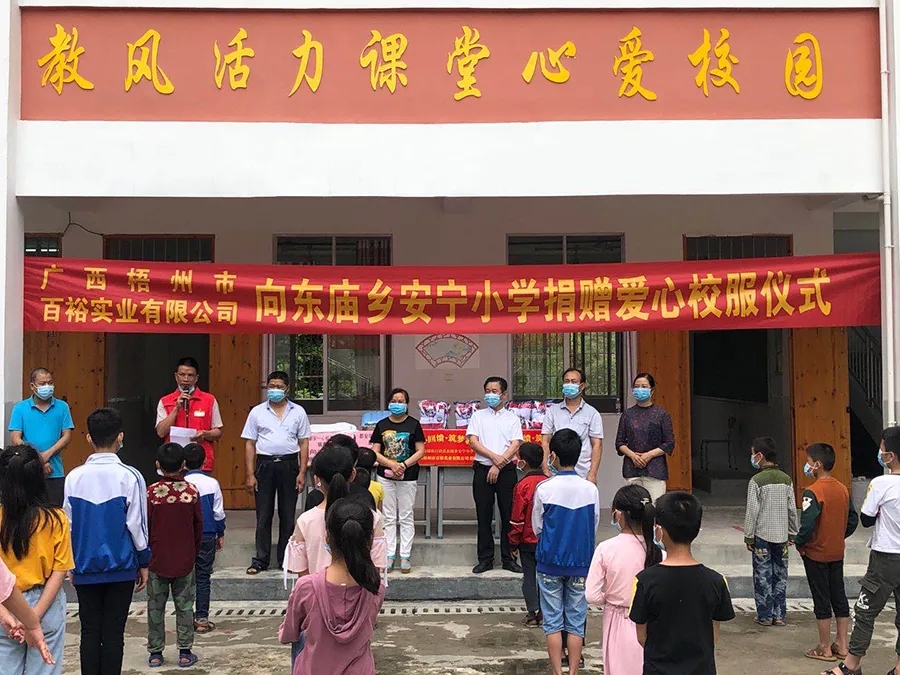 東廟鄉(xiāng)山多地少,地理位置偏僻,全鄉(xiāng)經(jīng)濟基礎(chǔ)比較薄弱。百裕集團自進駐河池市以來,高擎黨旗引領(lǐng),不斷推進公益事業(yè)發(fā)展,通過熱心兒童公益、關(guān)注精準(zhǔn)幫扶、建立扶貧車間等形式,在教育、文化、產(chǎn)業(yè)等各方面,在當(dāng)?shù)刂乒?,以高度的?zé)任感履行社會職責(zé)。