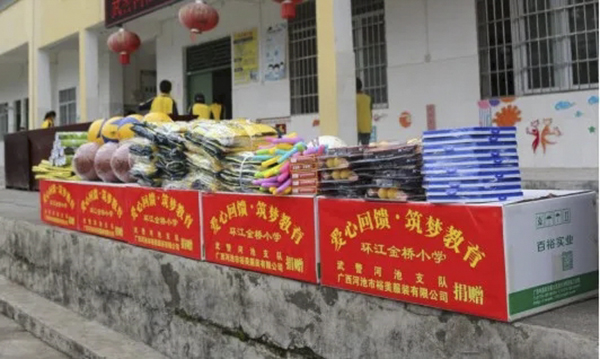 5月26日,河池分公司走進(jìn)環(huán)江大安鄉(xiāng)金橋希望小學(xué),為孩子們送去文體用品和愛心校服,學(xué)校全體師生參加了此次捐贈活動。