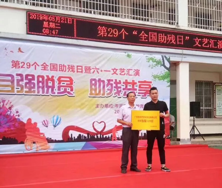 時值第二十九個全國助殘日,5月21日,以“自強脫貧 助殘共享”為主題第29個全國助殘日暨六一文藝匯演在岑溪市特殊教育學校舉行,活動中,百裕集團為孩子們送出愛心校服129套,以此共同為孩子們慶祝屬于他們的節(jié)日。