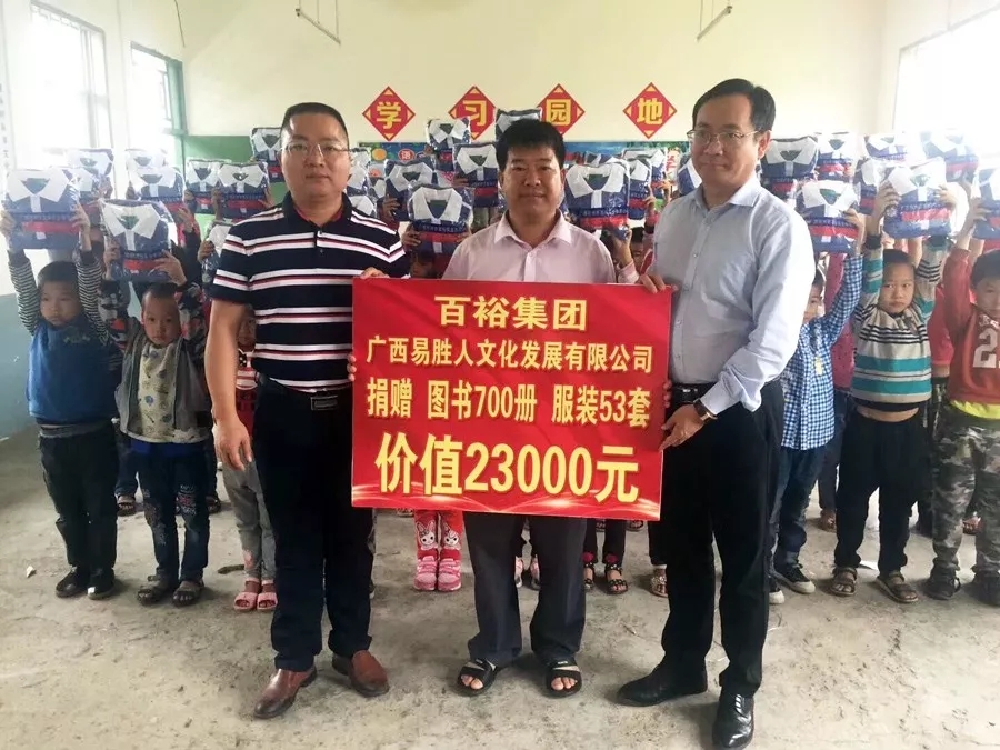 傳承愛心,愛不止步。百裕集團公益團隊同時還深入岑溪南渡鎮(zhèn)、都安縣下坳鎮(zhèn)、云南富源縣等地鄉(xiāng)鎮(zhèn)小學,用愛心筑夢,為教育公益事業(yè)盡綿薄之力。