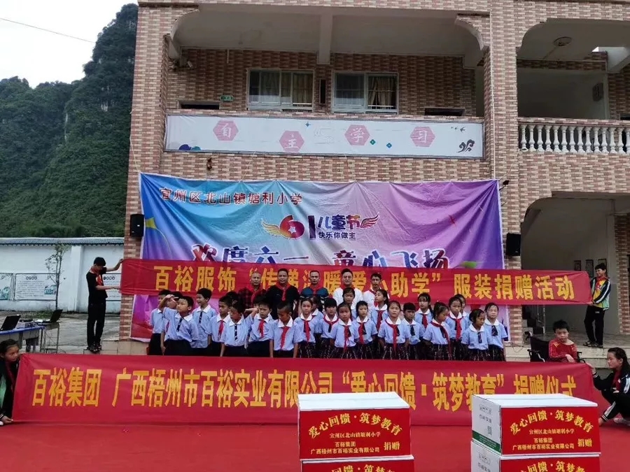 百裕集團服務(wù)河池地區(qū)已有6年多,多年來開展了一系列的捐贈助學的公益活動。時值六一兒童節(jié),百裕集團不忘初心,兌現(xiàn)“為環(huán)江村屯學校捐贈1106套愛心校服”承諾,并增加圖書等物資捐贈,在總經(jīng)理林志煌的帶領(lǐng)下,先后走進環(huán)江縣10個鄉(xiāng)14個村級小學,惠及1106名小朋友,為孩子們送上節(jié)日的祝福。